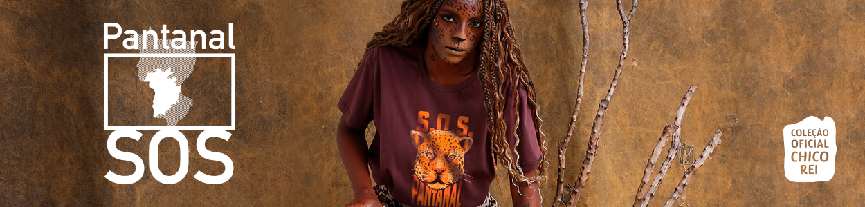 A Coleção Oficial SOS Pantanal tem parte da renda revertida para o instituto e para para o financiamento de brigadas contra incêndios. Preserve o Pantanal com a Chico Rei!